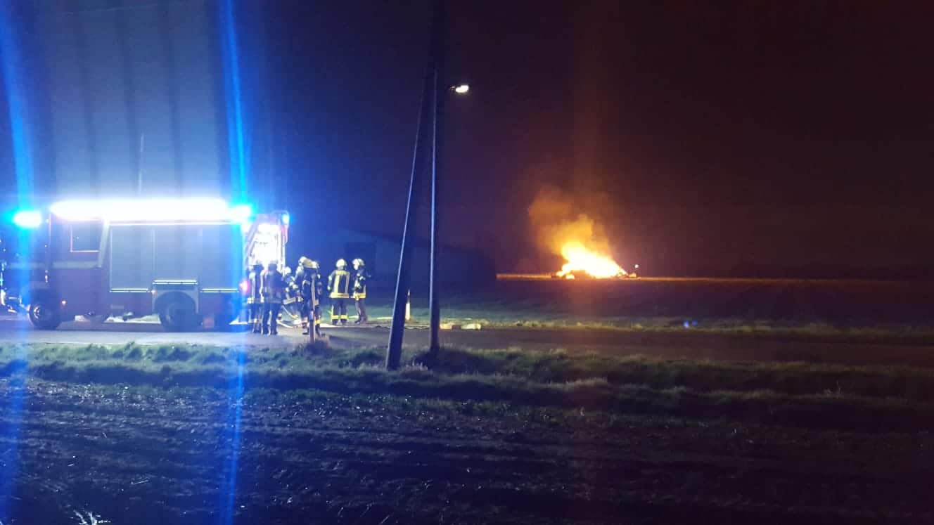 Brennende Strohballen in Kamen