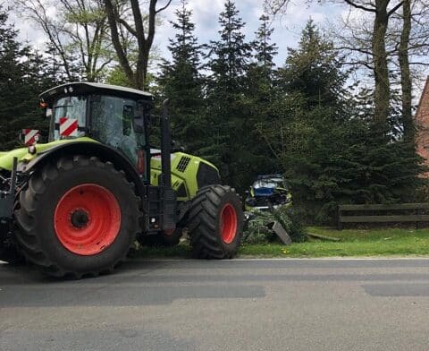 Mit dem Traktor Streifenwagen gerammt